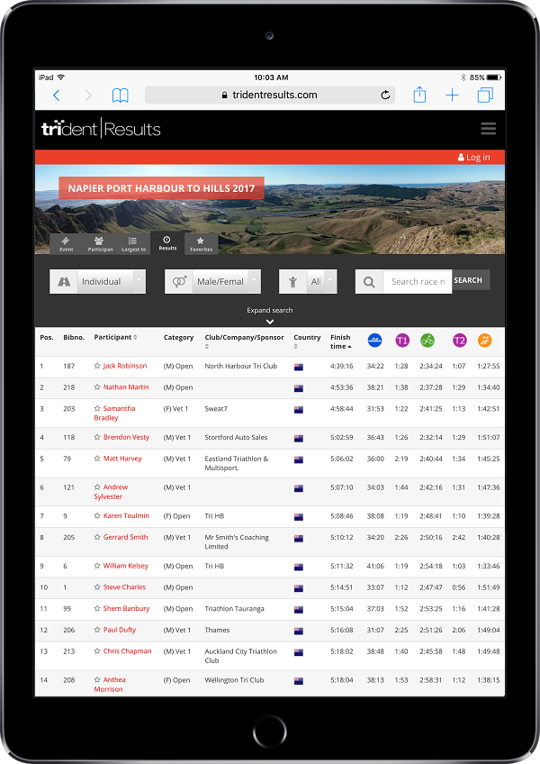 Log in codes, guides and instructions for racing are available from Trident Results Support.